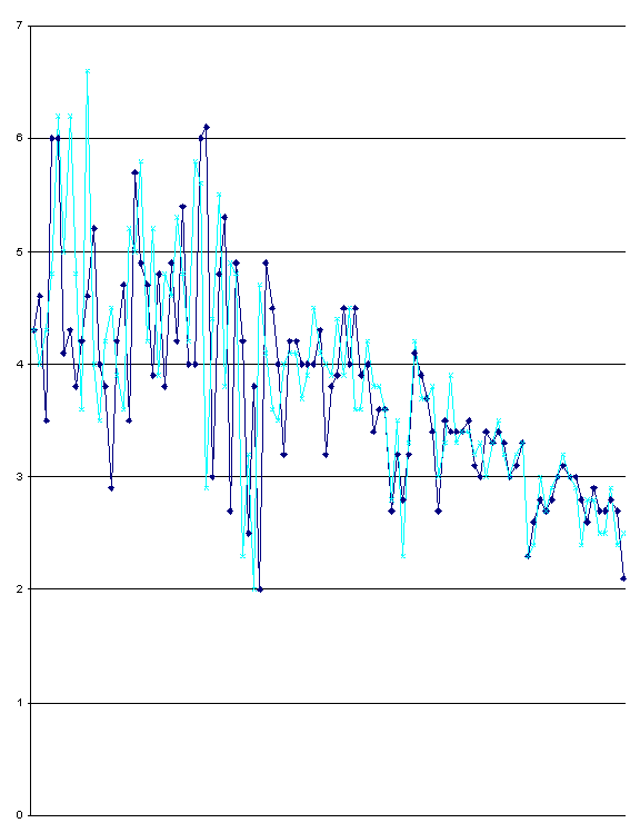 Average numbers of lamellae per osteon were counted in all osteons present in two fields. Incomplete on obliquely cut osteons were excluded. The data was statically analyzed and revised regression equation was derived.