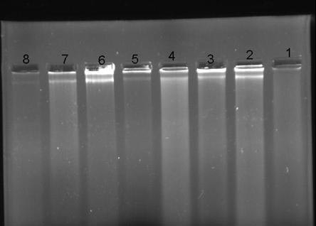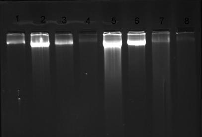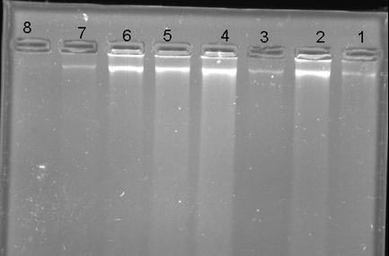 In this study ethidium bromide was used as fluorescent agent. The result was interpreted by Alpha Erase Fc Tm software version 3.1.2 of Alpha Infotech.