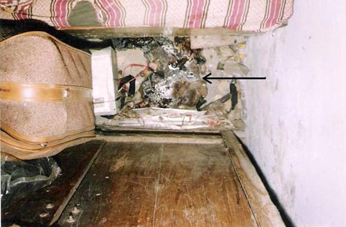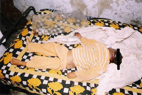 MA, a three and half year’s male child was reported missing from his house. Three days latter, a fowl smell emanated out from one of the rooms of the house. Thinking that smell is due to some decaying dead rat, the family members searched the house. During this process they found the decomposed body of MA with head down position in the space between the bed and wall (photograph 1,2). The clothing like quilt and blankets were covering the body entirely. The incident was reported to local police, who thinking it to be case of homicide and sexual assault, made an inquest and body was sent to this centre for medico legal postmortem.
